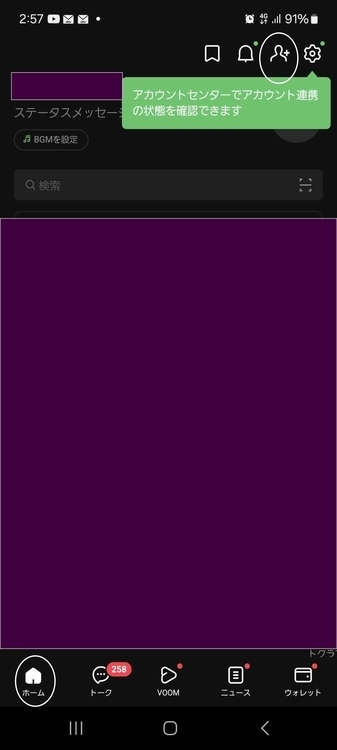 ②「ホーム」を押すと出てくる上記画像右上の部分を押す