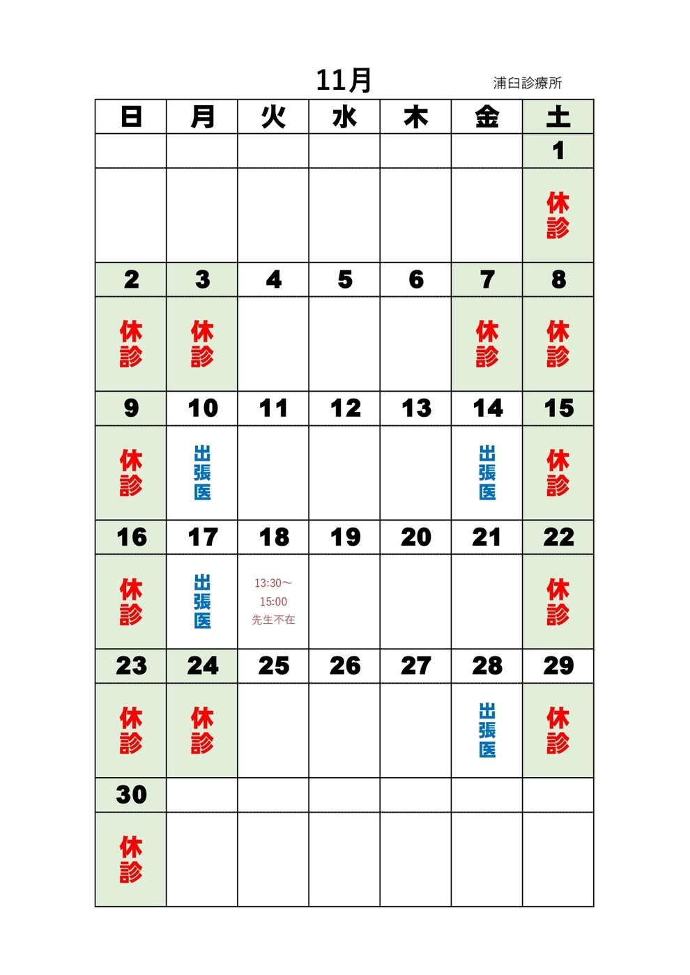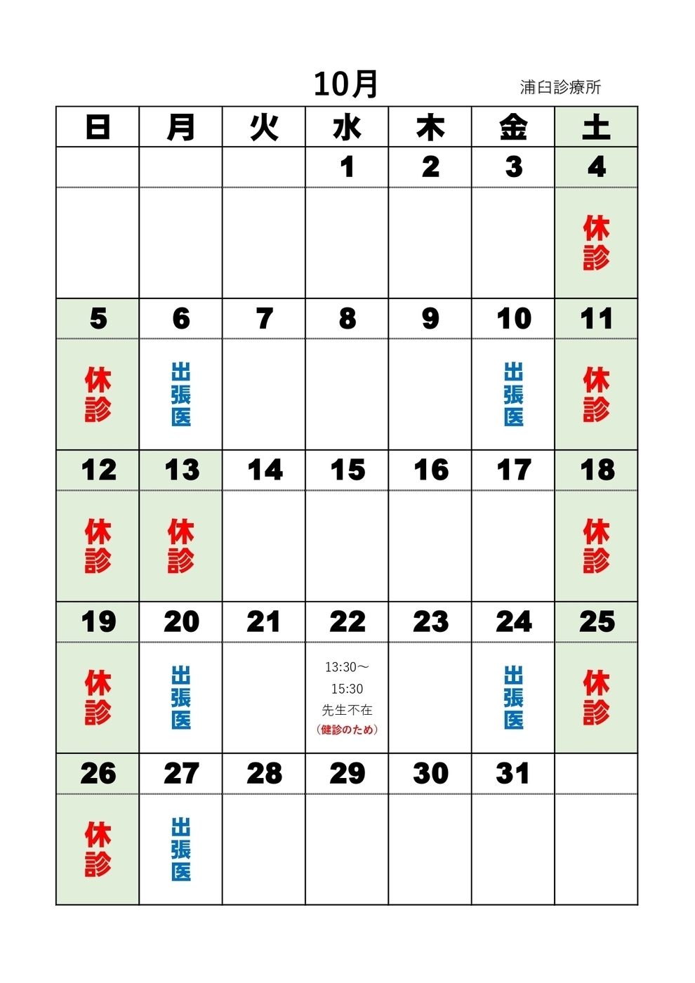 (注)上記以外にも都合により休診となることがありますので、あらかじめご確認のうえ受診願います。